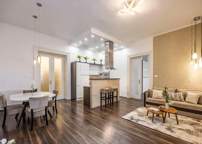 Als u in Exclusive & Charming City Center Residence W' Sauna Boedapest van 109 m² verblijft, kunt u de Donau bereiken, gelegen op wandelafstand van 25 minuten hiervandaan. Gasten kunnen gebruikmaken van wifi voor zowel zaken als vrije tijd.